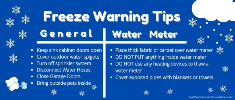 - Let indoor faucets drip, but do not run a heavy stream of water (remember, it only takes a small drip).